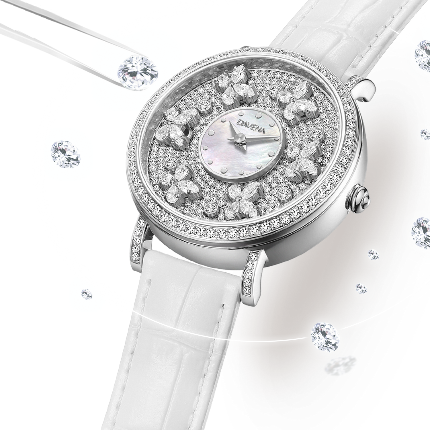 426 hand-set crystals flood the dial with star-like dazzling brilliance.