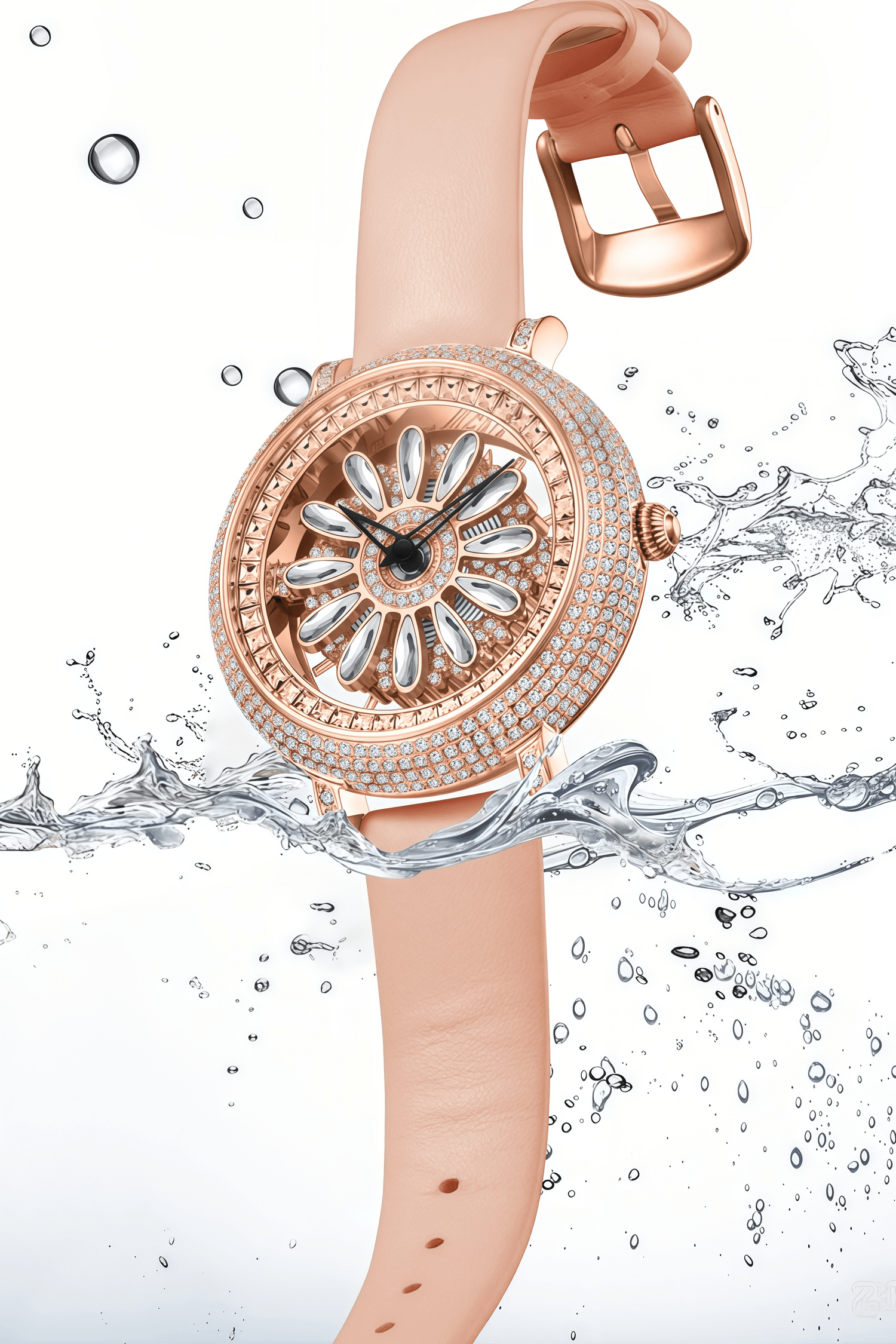 12 hand-set droplet crystals orbit the dial, creating dimensional daisy refraction.