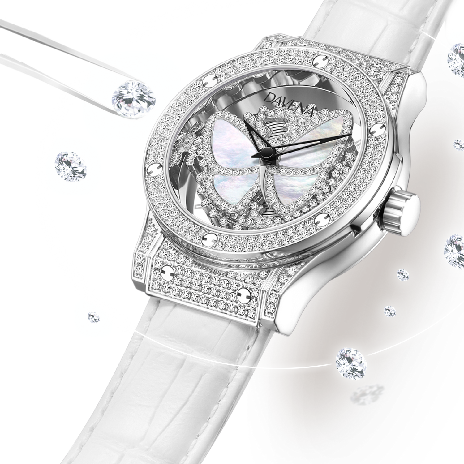 Inspired by "Good Fortune and Butterflies", the butterfly in the center of the dial is vivid, like an elf of good fortune. The texture and luster of its wings are like imprints of destiny, signifying surprises and transformations. The Crystal are brilliant like the light of good fortune. The white strap is pure. The overall design blends luck and beauty. When wearing it, it seems that butterflies are accompanying, leading the way of good fortune.