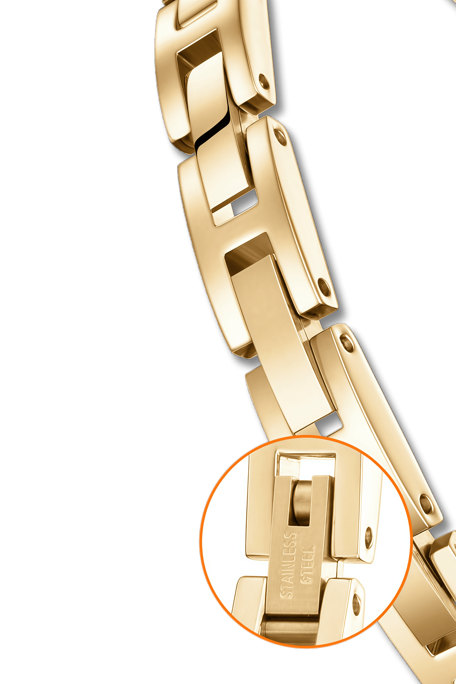 Pin-style links interlock seamlessly, embodying connection and protection for your precious moments.